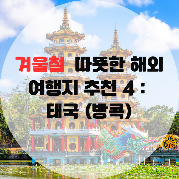 안녕하세요! 겨울이 찾아오면서 따뜻한 나라로 떠나고 싶은 마음이 드시죠? 그래서 오늘은 겨울철 여행지로 인기 많은 태국 방콕을 소개해 드리려고 합니다. 방콕은 따뜻한 기후, 다양한 볼거리, 그리고 저렴한 비용으로 여행을 즐길 수 있어 많은 사람들에게 사랑받는 곳이에요. 방콕의 매력을 하나씩 알아보며 겨울 여행을 준비해보세요.