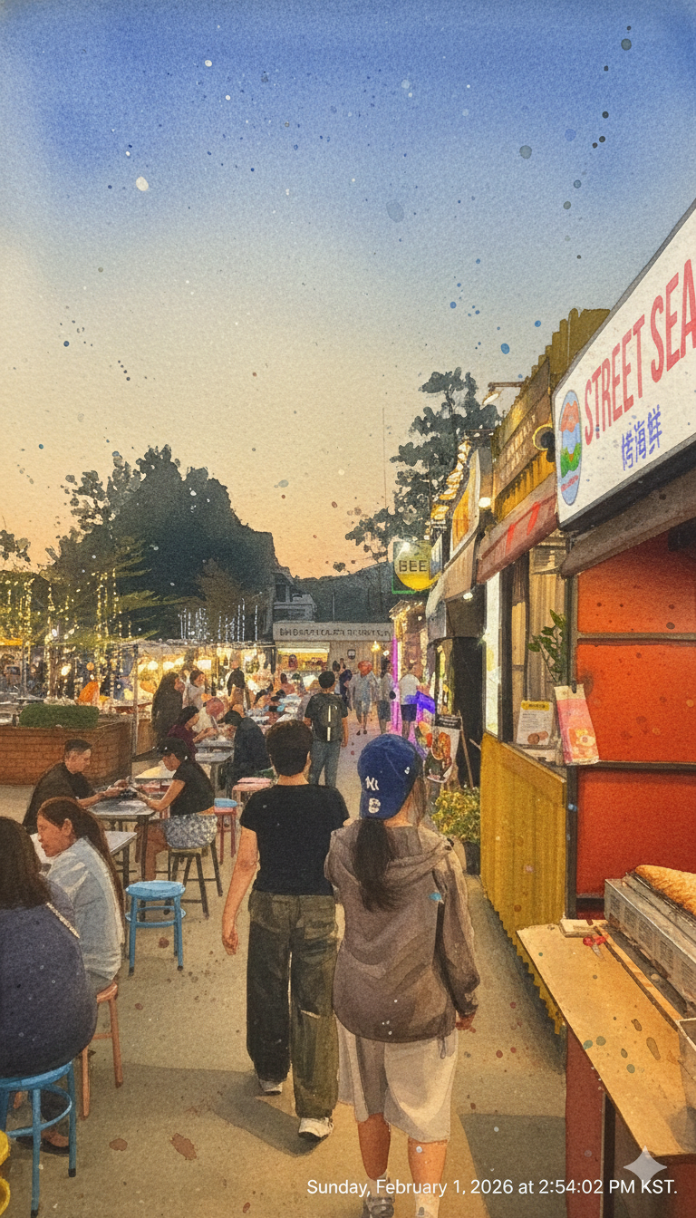 중간에 작은 야시장 구역에서 간식 몇 개 사 먹었다.