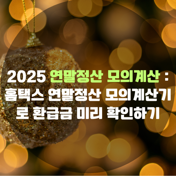 | 2025 연말정산 미리보기, 연말 정산 절세 꿀팁 공개! (0) | 2024.12.27 |