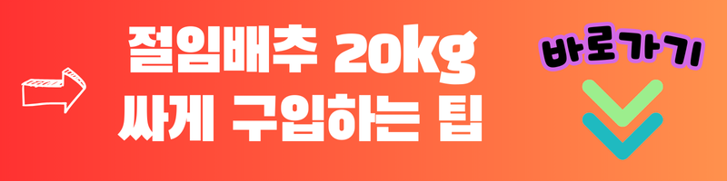 - 사전 예약 활용: 절임 배추는 사전 예약을 통해 싸게 구입할 수 있는 경우가 많아요. 특히 온라인 쇼핑몰에서는 사전 예약 할인 행사를 자주 진행하니, 이를 적극 활용해보세요.